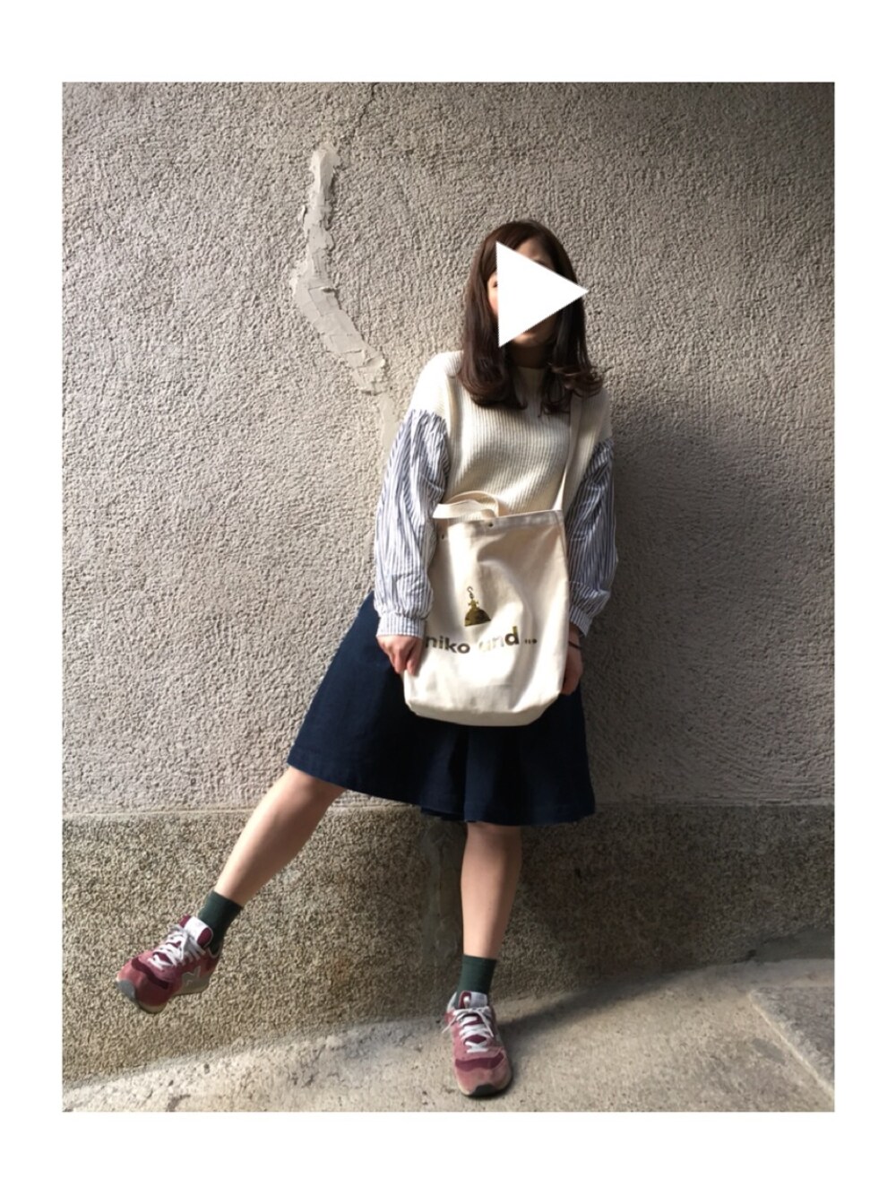 もぴこのニット/セーター「袖切替ざっくりニット」を使ったコーディネート
