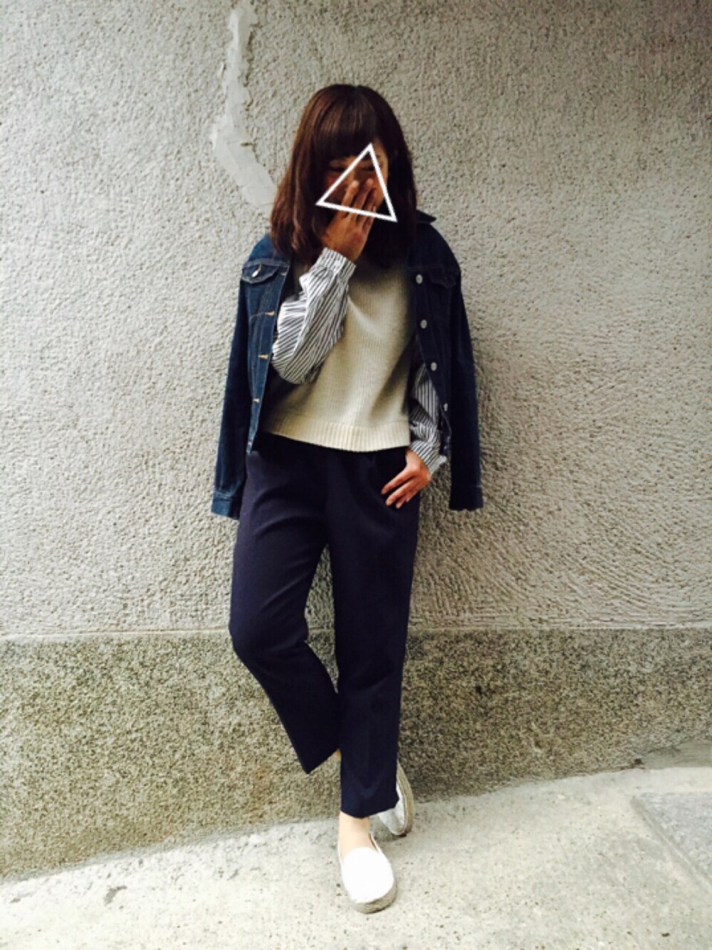 もぴこのニット/セーター「袖切替ざっくりニット」を使ったコーディネート
