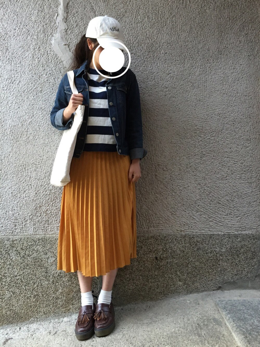 おはようございます ✩°。⋆ もうこんにちはかも知れない、、(笑) 今日はプリーツの可愛いイエローのスカート ☺︎︎ デニムとの相性がばっちりすぎて可愛い ♡