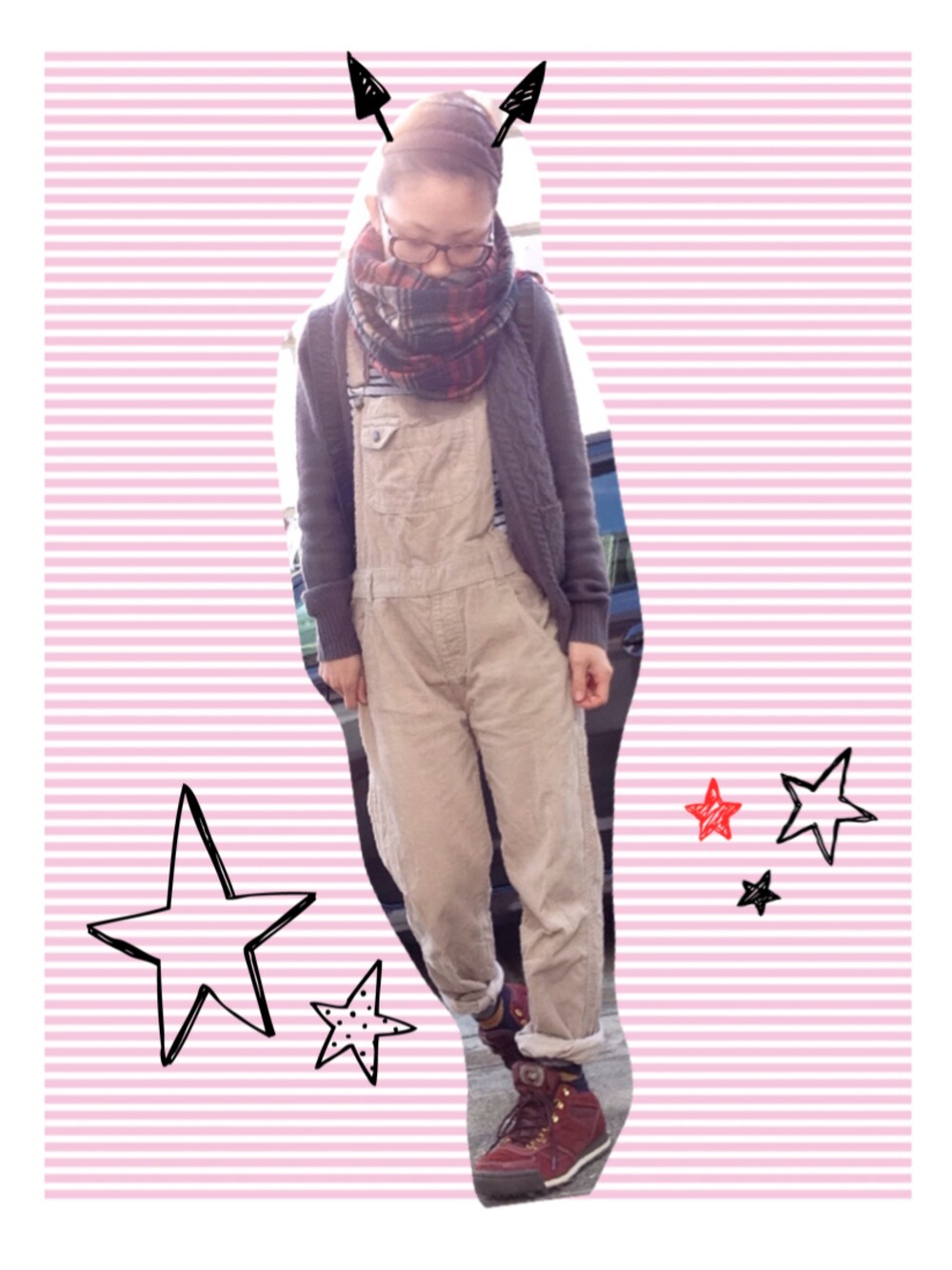 寒いけど車だからアウター要らないかな⁇ WEARみてると毎日何着るか迷わなくて済むかもー(*´艸`) メガネ Chloe オーバーオール 古着 シューズ newbarance 靴下 福助 カーディガン SHIPS ☆☆☆