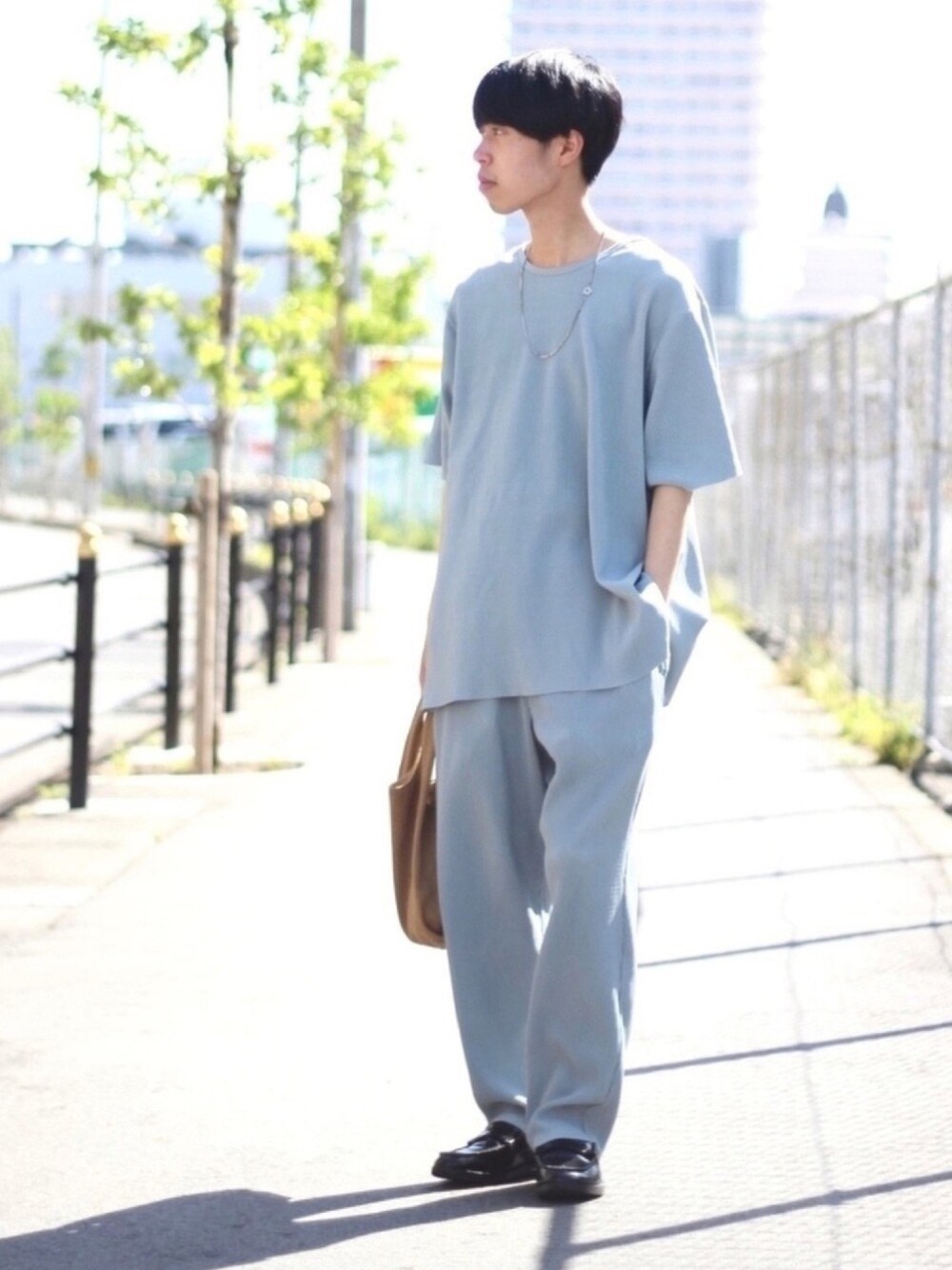【本日のコーデ】 ---楽ちん!!夏のセットアップスタイル✨--- こんにちは🌞今回は夏のセットアップが作るリラックスコーデを紹介します😆 なんとも涼しげですよね! プリーツ素材のTシャツとパンツがすごく涼しい雰囲気を出してくれます✌️ 着心地も抜群です! しかも色味の淡いブルーの感じがたまらない😊 (MinoriTY) セットアップだけではのっぺりするコーデをシルバーのネックレス(HARE)でアクセントに✨✨ きれいめなコーデを意識したかったので靴はローファーに!ローファーは革靴の中でもかわいいのでちょうどいい!しかもサンダル感覚で履けるのでコンビニにちょっとした買い物に行くときに最適です👍👍(GGD) ---まとめ--- ・プリーツ素材で涼しいコーディネートに ・淡色でさりげなく ・ネックレスで垢抜けよう ・ローファーできれいめ&かわいいを ・ちょっとした散歩やコンビニに 最後まで見てくださってありがとうございます! 他のSNSでもファッションもどうぞ👔 Instagram @n.m.n____70