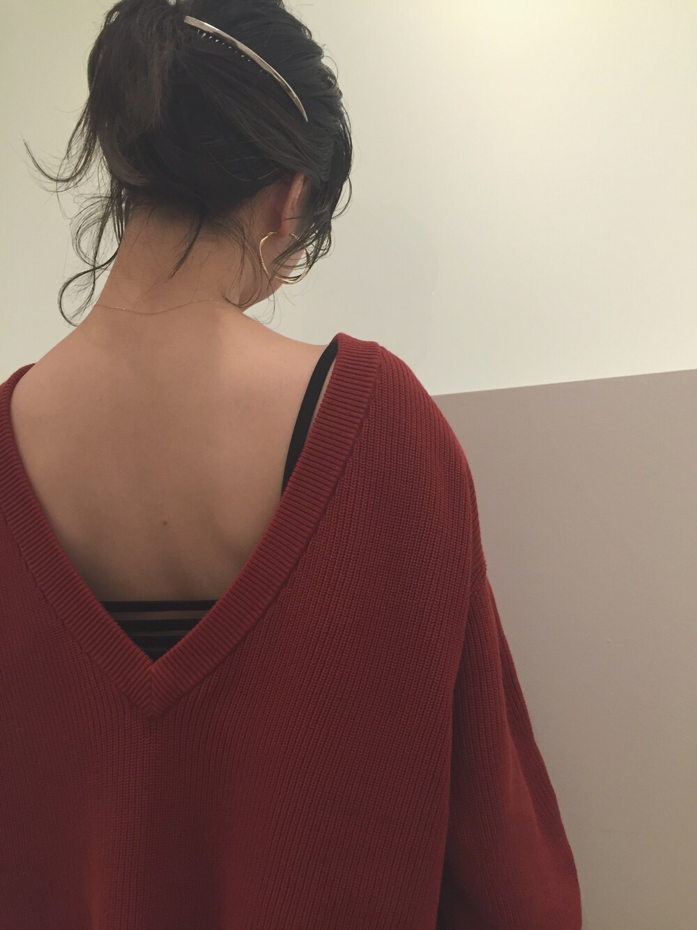 背中ざっくりニット インナーでも遊べて可愛いです🐈💭
