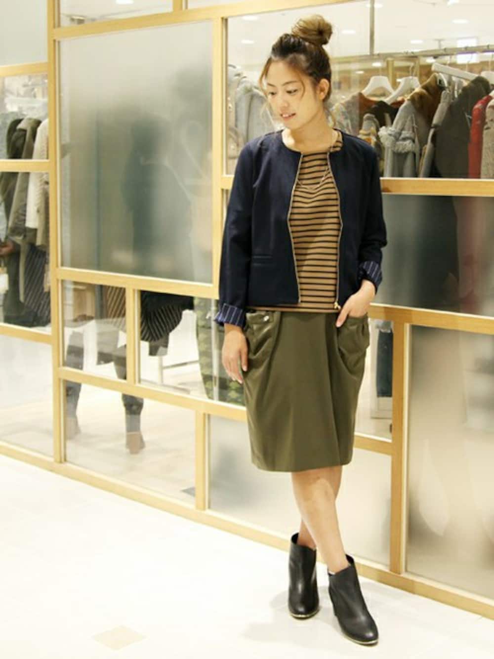 こんばんわ~ 店頭のお洋服の色味がかなり秋冬使用になってまいりましてなんだかほっこりな気分に(^u^) ネイビー、カーキ、キャメルってベーシックですけどいいですよね~安定感。 ジャケット、スカートはSRICの物でベーシックな色味に変形したデザインでコーデのアクセントにはたまらないアイテムです!(@_@) お仕事などでも◎ないちまいなので要チェックですよ~ お是非 今回はこの辺で―
