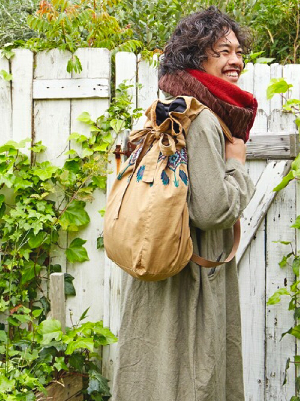 チャイハネMEN'S Moriのバックパック/リュック「【チャイハネ】grn×Amina キリムロードワンショルダーリュック」を使ったコーディネート