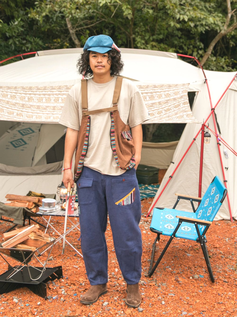 春キャンプを満喫! ベストはなんとバッグにもなる優れもの。 Tシャツはgrnとのコラボアイテム✴︎ チェアやテント、タンブラーなどのキャンプギアはネイティブ柄。 キャンプ場でも映えるのでおすすめです◇◆