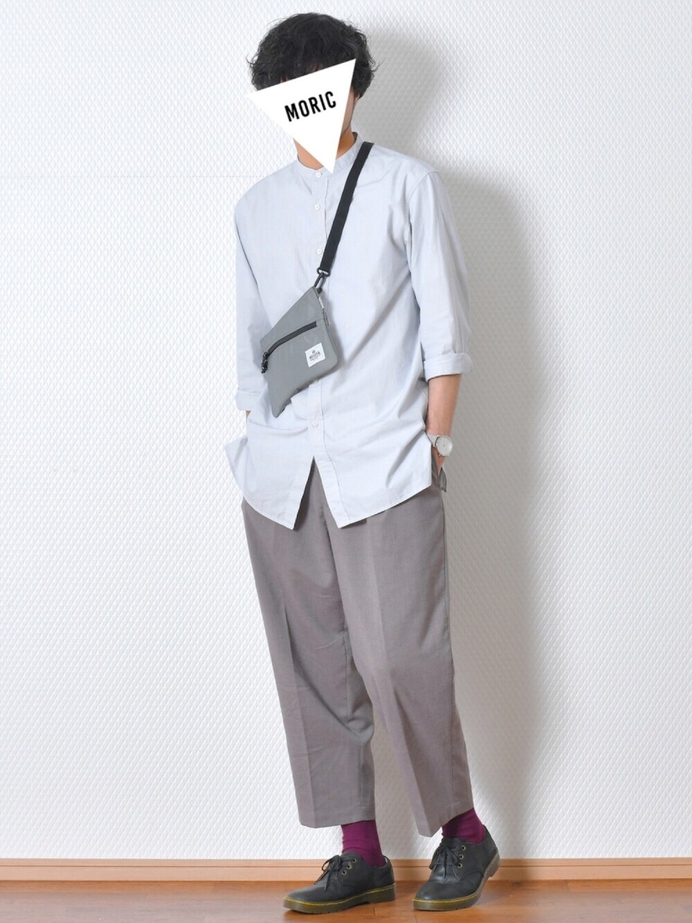 MoriCのシャツ/ブラウス「ストライプスタンドカラーシャツ(長袖)+E」を使ったコーディネート