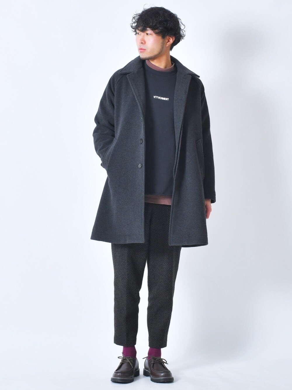 MoriCのステンカラーコート「ケープメリノステンカラコート」を使ったコーディネート