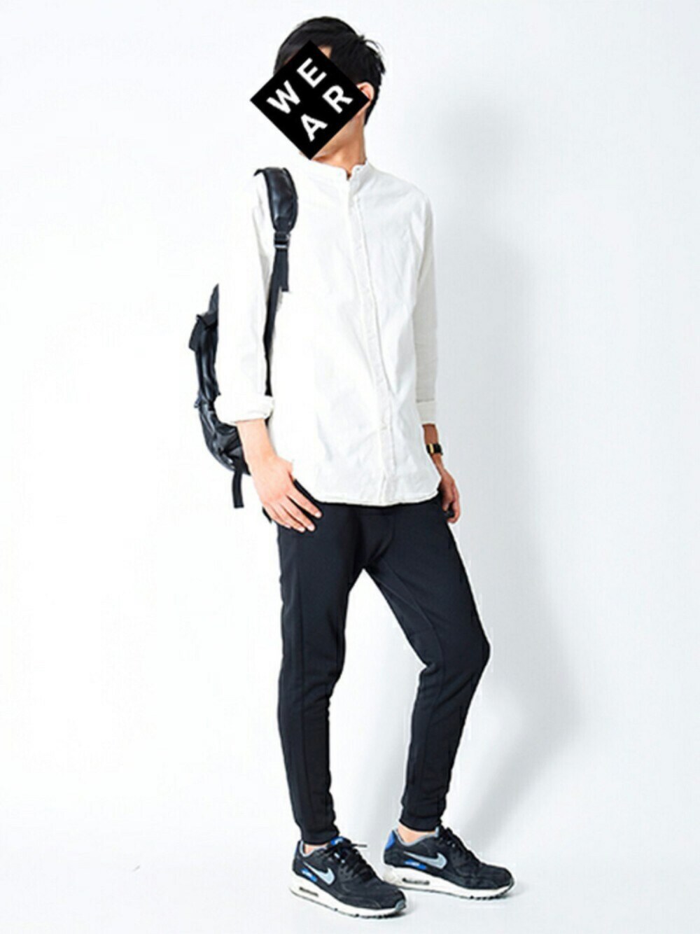 2コーデ目UP↑↑ モノトーンを基調としたスタイルに♪ 夏→秋のまだ暑さが残るこの季節には白シャツで清潔感ある涼しげなコーディネートに。 袖をまくることで夏感を残しつつラフ感を。 お気に入りのエアーマックスとリュックでスポーティーに仕上げました!