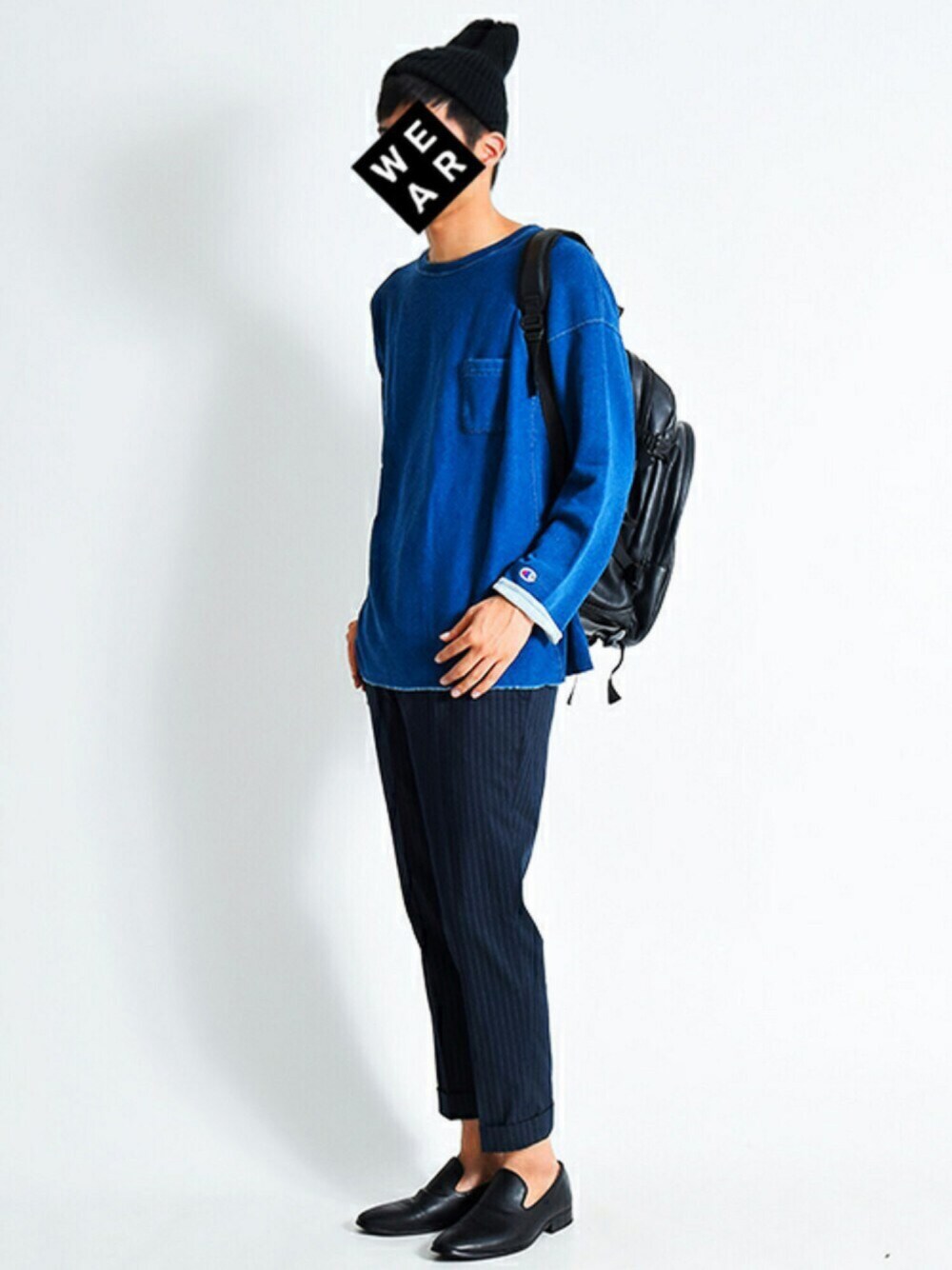 本日のコーディネート[9/10] ゆるシルエットのトップスはあまり着ないのですが、 前から気になってた「スウェットシャツ」が手に入ったのでコーデUP! 今回のポイント▼▼ ¨¨¨¨¨¨¨¨¨¨¨¨¨¨¨¨¨¨ ブラック×ブルーで構築したコーディネート。 トップスはデニムライクなゆるスウェットシャツであえてカジュアルな印象を。 袖口を折り返すことでスウェットの白い裏毛がほどよいアクセントとなり、 暗い印象になりがちでしたがたったこれだけで全体に軽い印象をもたらしてくれます。 もちろん小技感もUP↑ ※アンクル丈も軽さ作用として使えます カジュアルライクなりすぎないようにニットキャップやリュック、オペラシューズはブラックで統一。 最後にリュックで上半身にボリュームをUPし、Yラインコーデを際立たせています。 ¨¨¨¨¨¨¨¨¨¨¨¨¨¨¨¨¨¨ 本日は【おまけ】写真付きです。 ここまで付き合ってくれた方、感謝です。 ---------------------------- 気が向いたら、いいね!やSAVE、もしくはフォローお待ちしております┏○ペコ コメントもお気軽にどうぞ♪