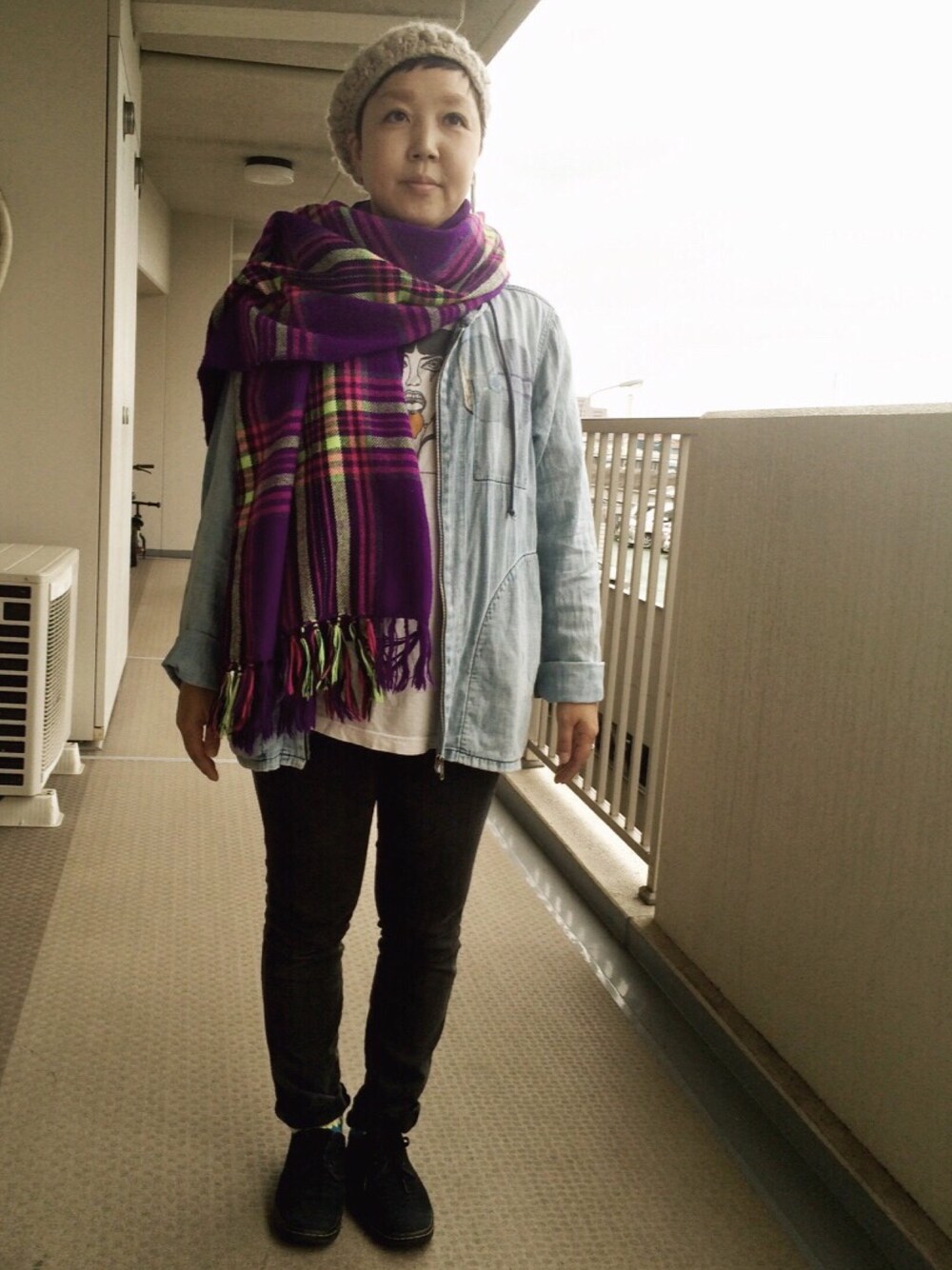 2015.11.15 ◯▲□WEARはじめました◯▲□ 2回目の初心者です! よろしくお願いします! ちょっとそこまで スーパーと、100均へ お気に入りのTシャツを着て ・bohemians×横尾忠則 Tシャツ ・bohemians デニムパーカー ・gml アクリルイヤリング ・ハンドメイド (おかん)ニット帽 ・Dr.マーチン キャンバス地スニーカー