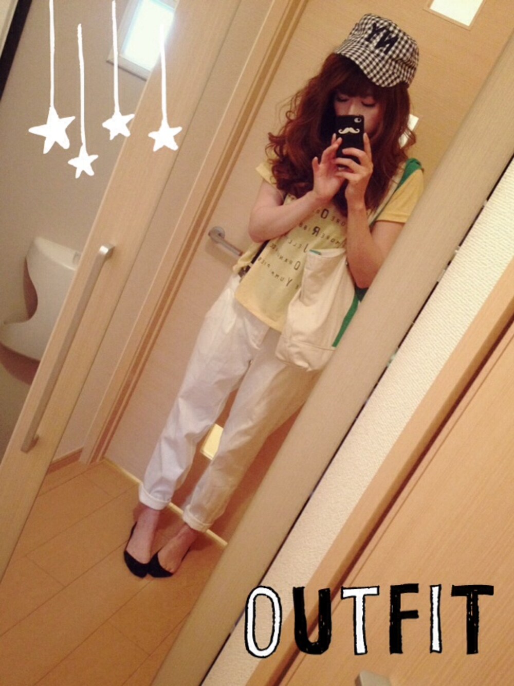 ホワイトパンツで落ち着いていたので ギンガムチェックのキャップで アクセント⍢⃝ ⍤⃝ ⍥⃝ ⍨⃝ ⍩⃝⃜ cap グローバルワーク 他すべて GU