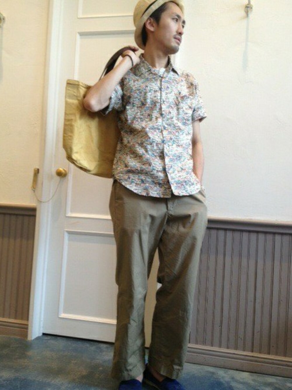 アロハシャツにエスパドリーユで夏を意識。 ワイドパンツでリラックス感を出しました。