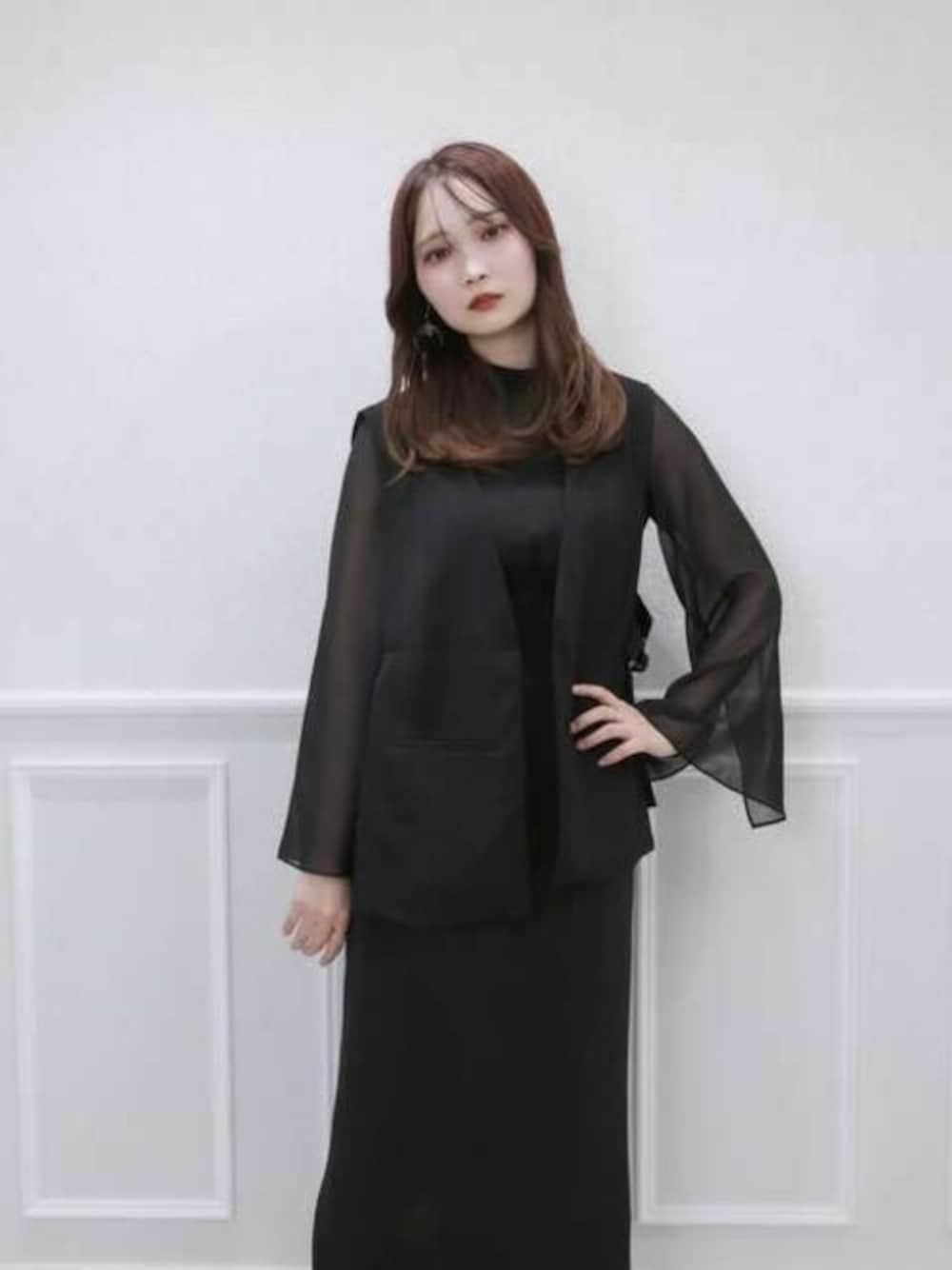 ■スリットスリーブ×ジレ カジュアルにも使えるジレと、スリットスリーブが魅力的なワンピースのセットアイテムです。 都会的なデザインで、おしゃれさんにおすすめな一着。 ジレはサイドがベルトになっているので、好きなサイズに調整が可能です。 オケージョンシーンはもちろん、特別なお食事会などにもおすすめです。 ■スリットの入ったスカートで美脚効果も 体型カバーポイント:【二の腕】【脚】【ウエスト】【ヒップ】 ウエストポイントの入ったワンピースがシルエットを美しく整えてくれます。 立体感のあるネックラインで顔回りを綺麗に。 ■スリットスリーブで広がる袖が今っぽい ワンピースに使用しているシフォンは肌触りがよく程よい透け感なので、透け素材に抵抗がある方にもおすすめです。
