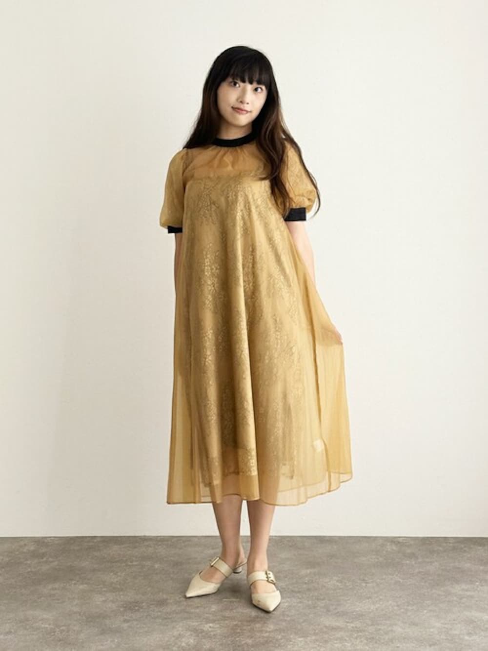 ■Aライン×シアー ふんわりとエアリーなAラインドレス。 シアーオーバーワンピースと、レースキャミワンピのレイヤードセット商品です。 ふんわりとした袖がフェミニンな印象に。 オケージョンシーンはもちろん、発表会や特別なお食事会にもおすすめです。 ■袖はボリュームのあるパフスリーブで二の腕をカバー 体型カバーポイント:【二の腕】【脚】【ウエスト】【ヒップ】 ハイネックデザインが首元を美しく綺麗に見せてくれます。 Aラインシルエットが自然と下半身を隠してくれます。 ■デコルテから袖にかけての程よい透け感が女性らしい 歩く度にシアーのスカートが揺れ、華やかさをプラスします。