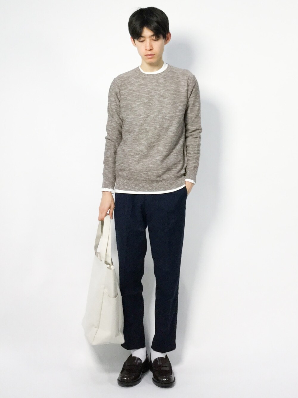 Morikawa Yoshinoriのニット/セーター「◇ジガラジャガード カットソーコンビクルーネック」を使ったコーディネート