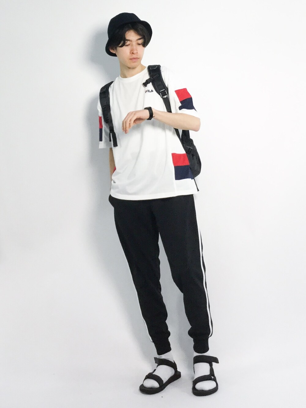 Morikawa YoshinoriのTシャツ/カットソー「∴WEGO/FILA別注ビッグシルエットロゴテープ切替Tシャツ」を使ったコーディネート