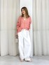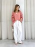 161cm. ▼ラミーシアーPO サイズ感:ややゆったりサイズです!比較的横の幅がしっかりあるので着るだけで着痩せ効果あり♡ 前後2WAYでも着れるのでスキッパーが良い方、丸首が良い方どちらも対応可能です! 素材感:麻の中でも比較的薄手のラミー素材100%なので通気性も良く真夏にもおすすめ♡そして透け感も麻の透け感なのでいやらしく無く上品な肌見せが楽しめます! ▼コットンリネンライトツイルパンツ サイズ感:やや大きめサイズです!ウエスト、着丈ともに気持ちゆったりです!私の身長で引きずる感じまでは無かったです! 素材感:薄手の生地なので馴染みも良く、全く硬くないので暑い夏も履きやすいです!