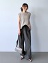 ▼ ハッスイ2WAYトラックPT サイズ感:普通サイズです!ゴムを伸ばすとワイドパンツのようにも使えるので、裾のたわみはしっかりあり、ドロストにしたとき生地たっぷりめでした! ウエストもゴムでかなりイージー! 素材感:こんなストレッチ新感覚!と思うくらいとてもストレッチが効いております!なのに見た目シャカっとしたハリ感もあり、ジャージ感が出過ぎない素材です! ▼ バックスリットNSPO サイズ感:普通サイズです。着丈は前丈インとかしなくても着るだけOKな長さです!後ろのボタンによって前から見たシルエットの変更が可能です! 素材感:麻も入っている事もありシャリっとした質感で夏着ていても暑すぎない素材です!通気性も抜群です!