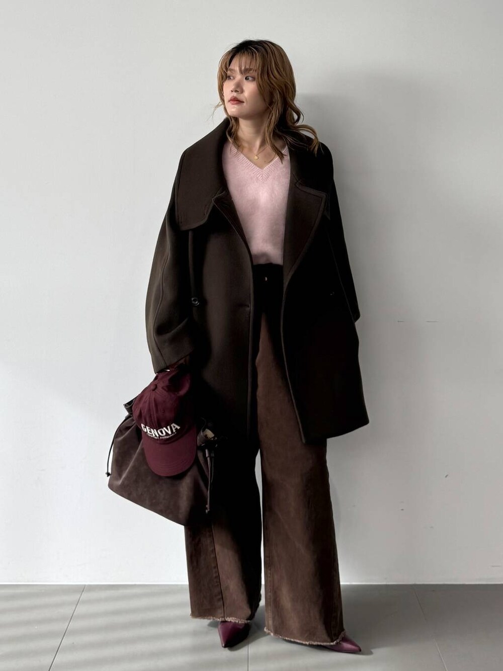 ▼ ダブルフェイスPコート サイズ感:結構ゆったりサイズです!着丈は私の身長だと膝ちょっと上くらいの長さです!かなりインパクト、お洒落感のあるデザインで着てるだけで雰囲気抜群にでます。 素材感: イタリアBELLANDI社のリバーシリーズGIULIA生地を使用しているので毛並みの美しさと上品なウールの光沢感があります! ▼FOXカシミヤ2WAYPO サイズ感:普通サイズです。着丈も短くコンパクトで、首の開き具合も大きく開き過ぎず使いやすいです!何にでも合わせやすいデザインです! 素材感:肌触りなめらかでとても気持ちが良いです。チクチクもしづらいです。見た目も高級感があります! ▼ バレルレッグデニムPT サイズ感:ややゆったりサイズです。裾がカットオフされているから、フラットシューズとも相性抜群のデザイン。 サイドの接ぎだけを使って作られているから、ダーツがないのでカジュアル過ぎずに大人のバレルレックデニムが楽しめます。