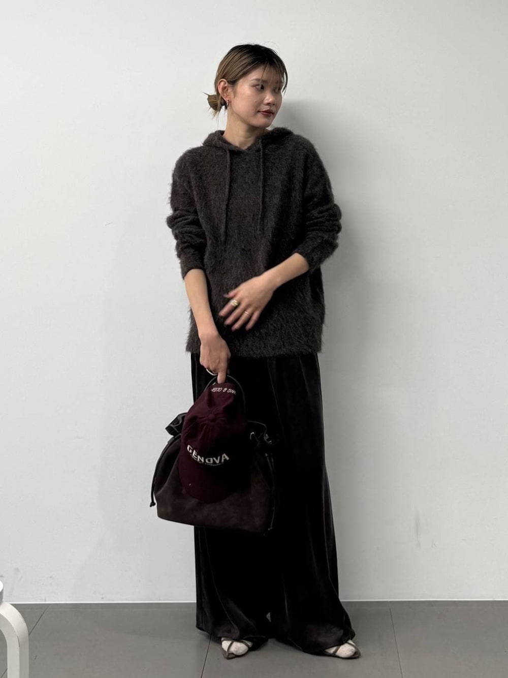 ▼ラマニットパーカー サイズ感:身幅はすっきりですが、長さがややあるリラクシーサイズです。 素材感:薄手の素材なのでパーカーだけどカジュアルすぎない!ラマの素材はとても暖かくて柔らかい素材です! チクチクも抑え気味です!