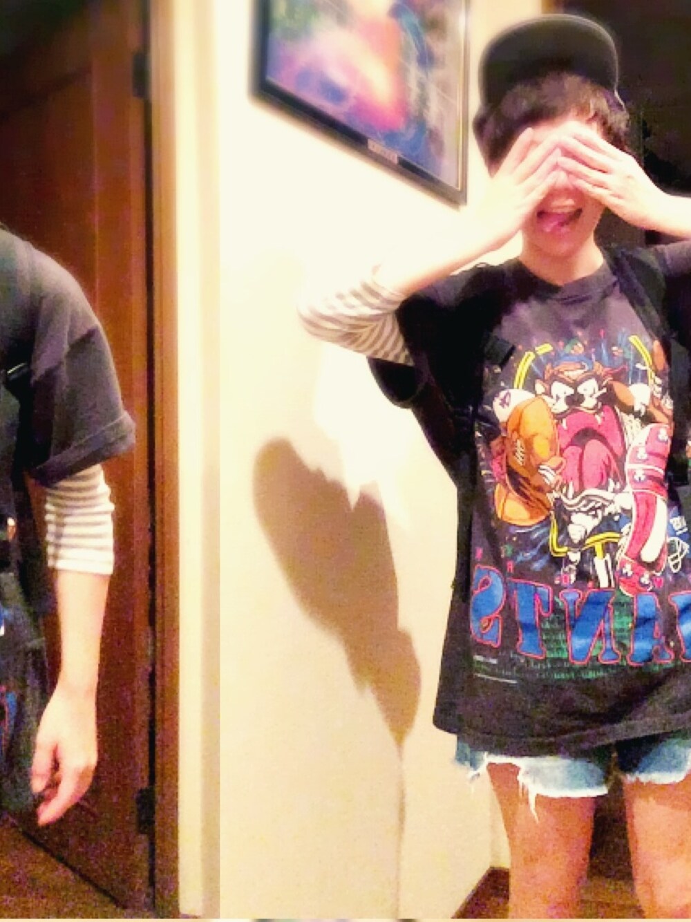 今週もはじまりました〜 学校とゆうことで楽ちん重視になってしまう。。 usedTシャツの分厚い感じ好き۬৺۬!
