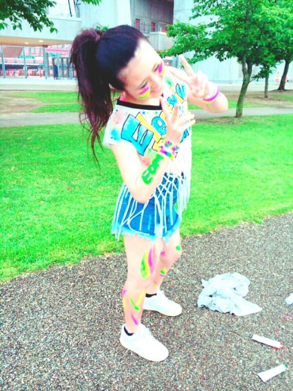 electricrunに着ていくために自分でアレンジした服♡ GUで買った服をごめんなさいだけど切ってカラフルにしてみました!