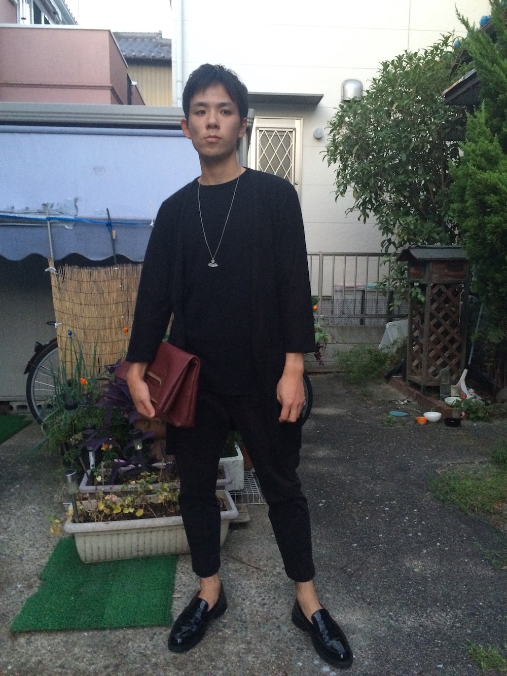 久しぶりの投稿になりました! 今日は、全身ブラックのオールブラックコーデです! いつもRAGE BLUEさんにはお世話になっております笑 今回のコーデポイントは、ロングのカーディガン! どこの店を探しても、メンズ用のロングカーディガンはなかなかなかったので、手に入って嬉しいです^ ^ 仕上げとして、ネックレスやボルドー色のクラッチバッグを取り入れて全体をまとめました。