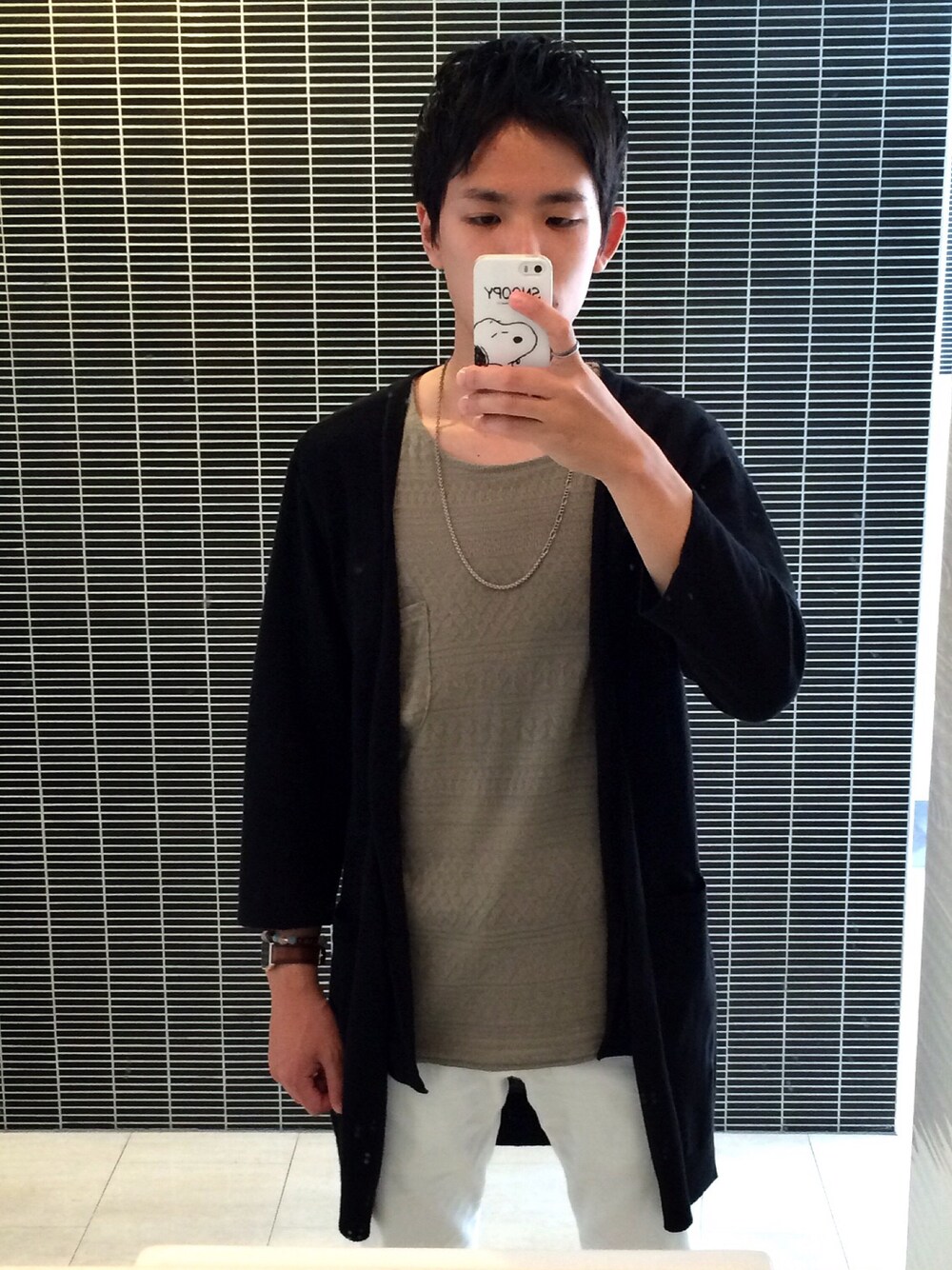 今日から大学始まりました^^; 月曜1限は辛すぎです(-_-) 今日のコーデは今季流行りのカーキ色を取り入れたコーデ! パンツは白のチノパン。 カーキと白の相性は抜群です! 朝、少し肌寒かったので黒のロングカーディガンを着用しました! また夕方にも活躍しそうです^ ^