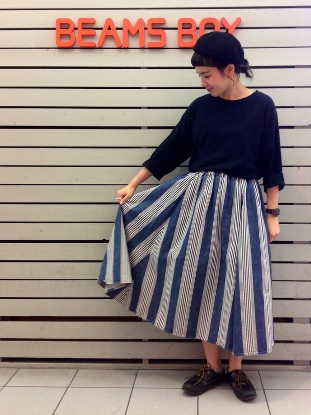 過去のスタイリングです☻ ボリュームたっぷやなサーキュラーのスカートも インディゴにすることで可愛らしすぎず、 カジュアルに使えちゃいます*\(^o^)/*
