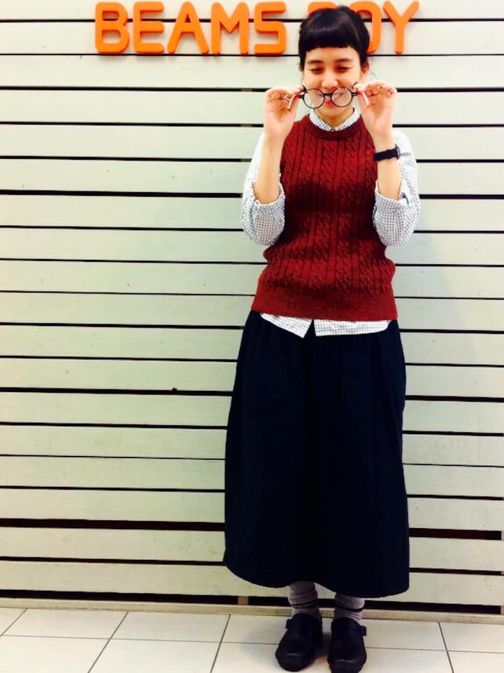 モリグチナオのベスト「BEAMS BOY / 7ゲージ ケーブル クルーベスト」を使ったコーディネート