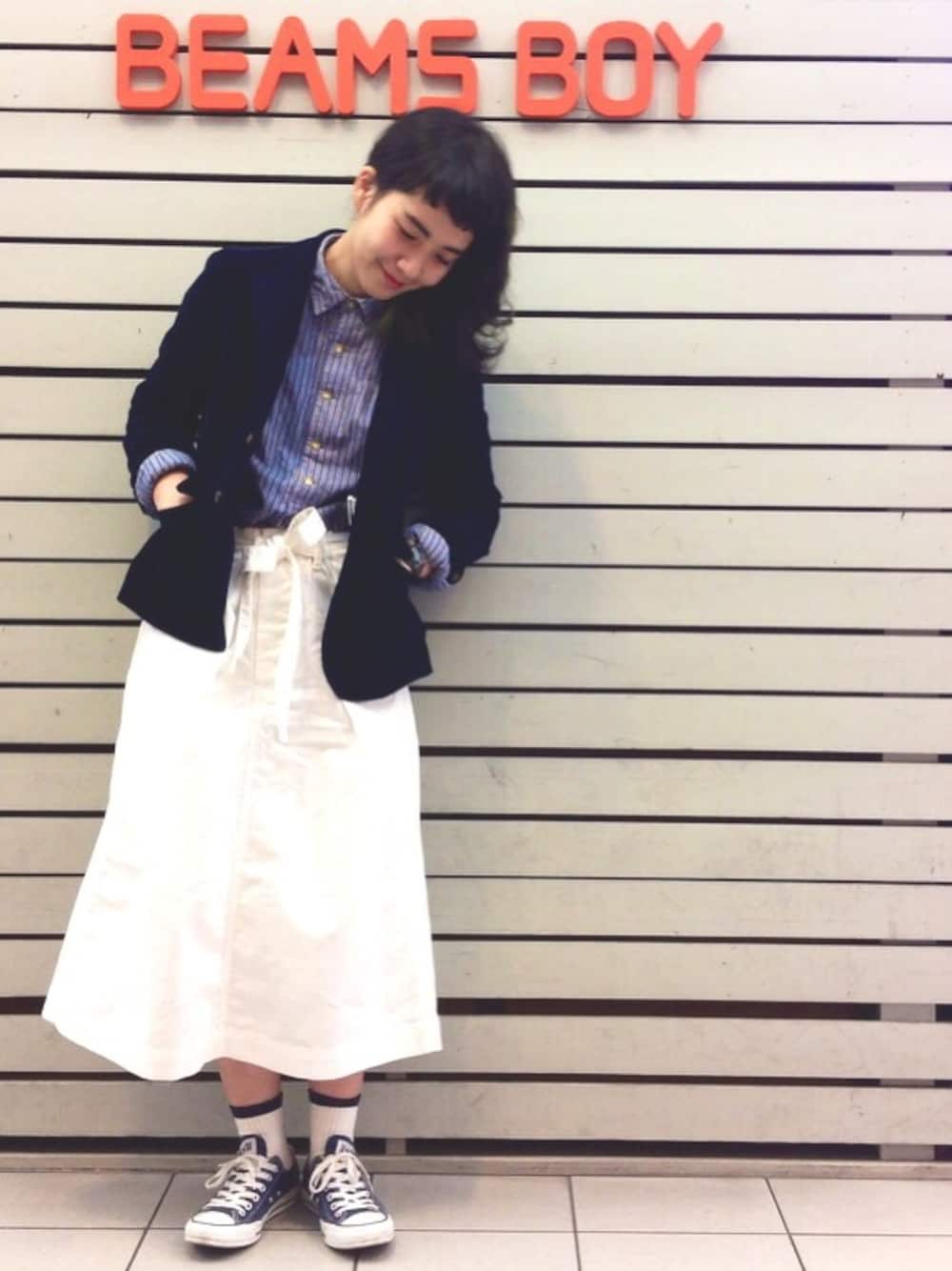 モリグチナオのテーラードジャケット「BEAMS BOY / コード 3ボタン ジャケット」を使ったコーディネート