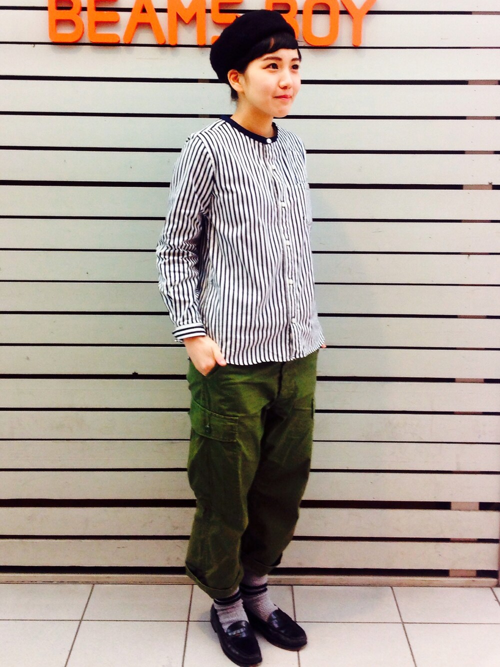 モリグチナオのシャツ/ブラウス「BEAMS BOY / バンドカラー 配色 ロングスリーブ」を使ったコーディネート