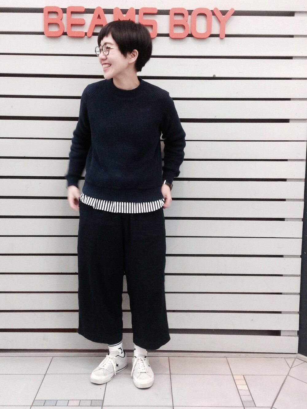 オールネイビーに、ストライプで アクセントをつけて白スニーカーで軽さをプラス☺︎ だんだん温かくなってきましたね! お洒落がますます楽しめる季節が近づいています♪ Pants: HAVERSACK