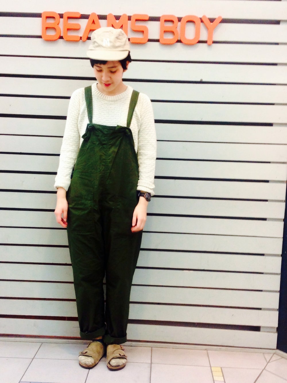 モリグチナオのニット/セーター「BEAMS BOY / 3ゲージ マーセライズ アランクルー クロップ袖 15SS」を使ったコーディネート