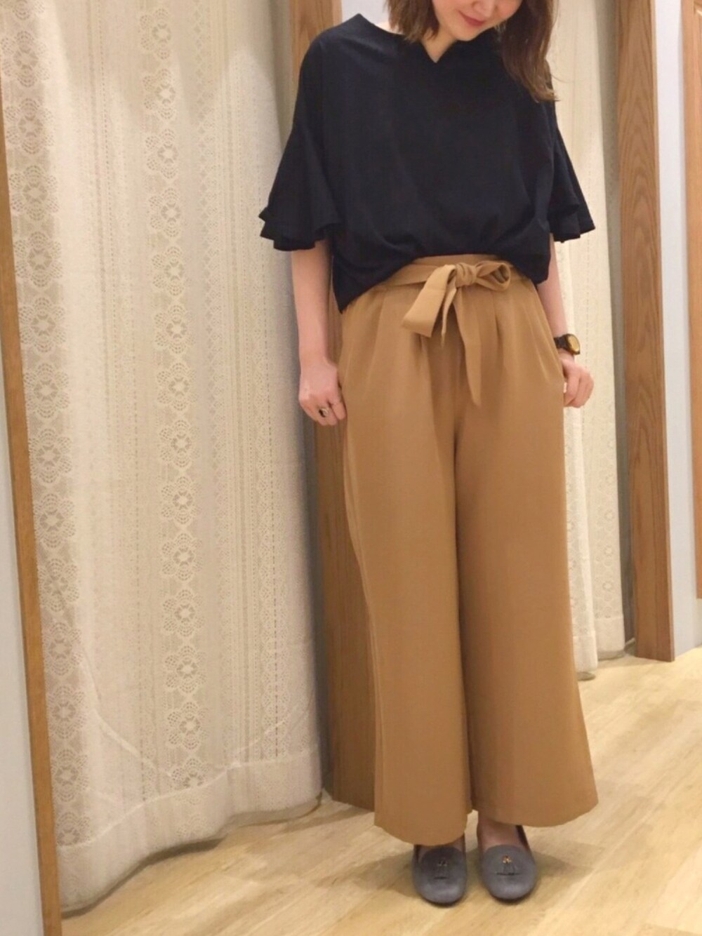 森ぽん。のつなぎ/オールインワン「【 SETアイテム 】SET2点プルオーバー+ワイドパンツ」を使ったコーディネート