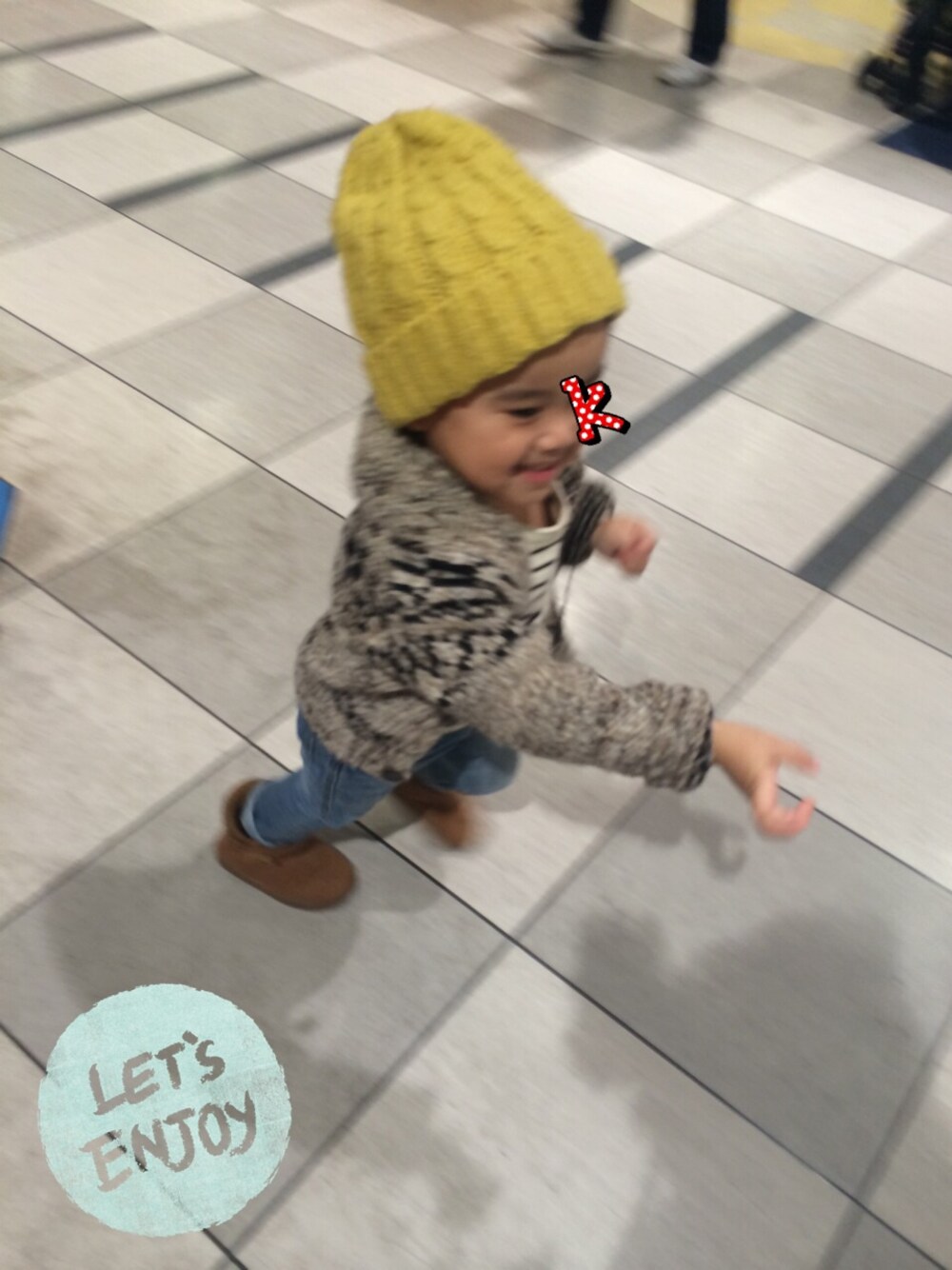 息子初登場♡笑 躍動感あふれすぎてもはやコーデどころではない。w