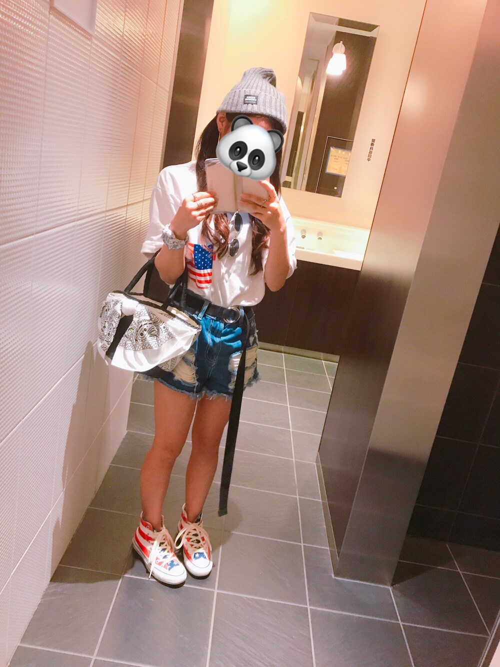 初投稿です🙌 ロデオコーデ🌺 夏ニット帽だから薄手でこれから活躍しそう🐼 コンバースのハイカットは一目惚れです🇺🇸