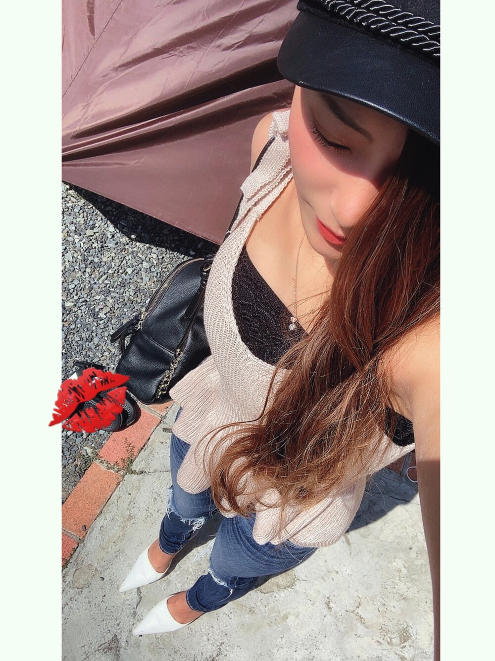 Reのキャミソール「ニットペプラムキャミソール」を使ったコーディネート