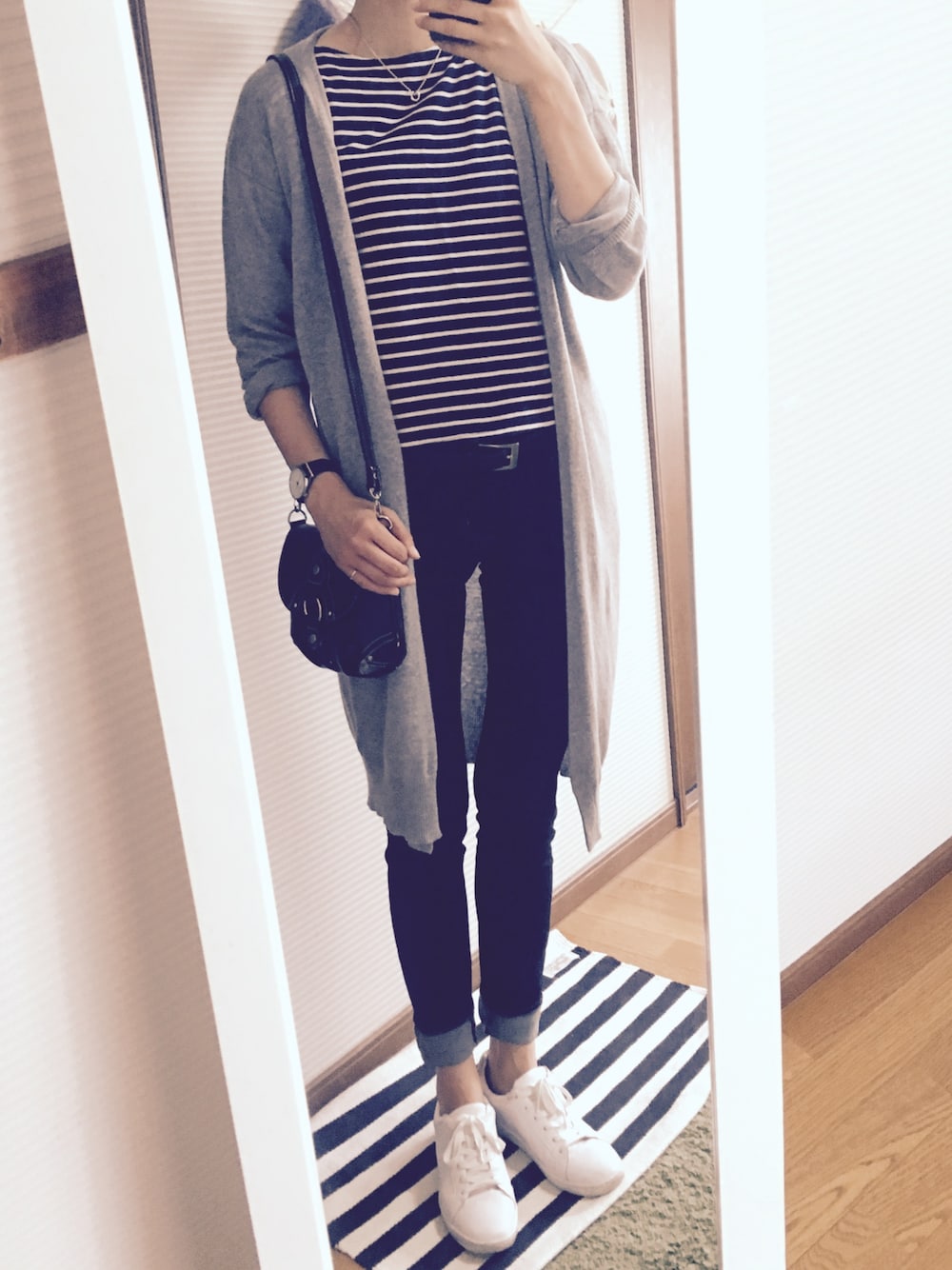 moritaのTシャツ/カットソー「ボートネックルーズフィットボーダーパターンTシャツ」を使ったコーディネート