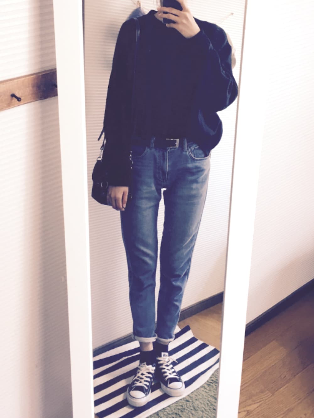 ZARAで買った黒のニット 軽いドルマンが綺麗でお気に入り✨