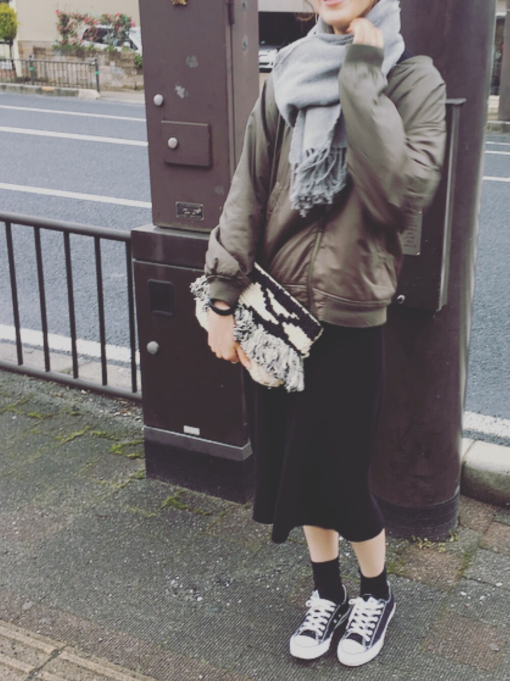 ワンピースとマフラーはGU アウターはUNIQLO 今日も楽チンコーデ👗
