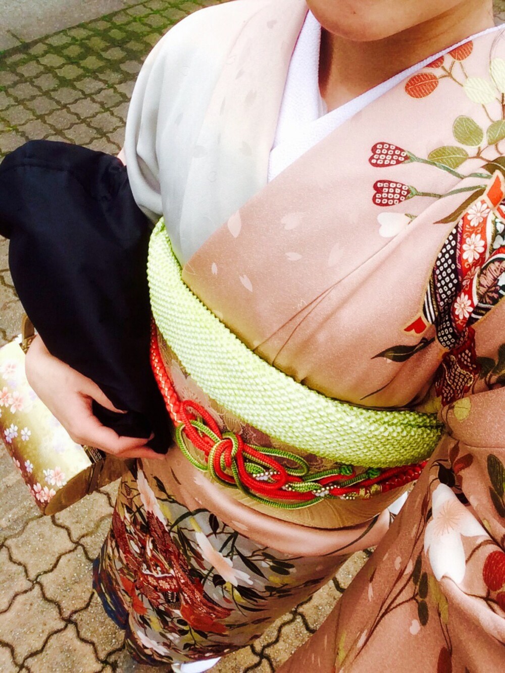 紺色でフォーマルなワンピースもいいけど、ハッピーカラーの振袖でお祝い🤗