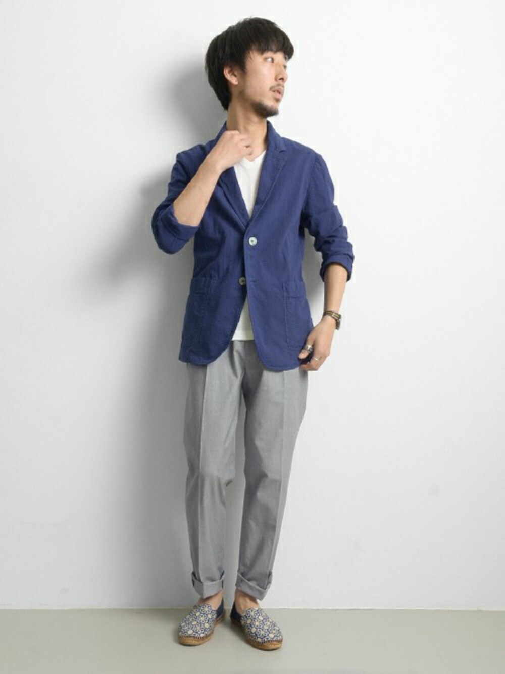 moriyamaのテーラードジャケット「UR サッカーストライプ製品染めジャケット」を使ったコーディネート