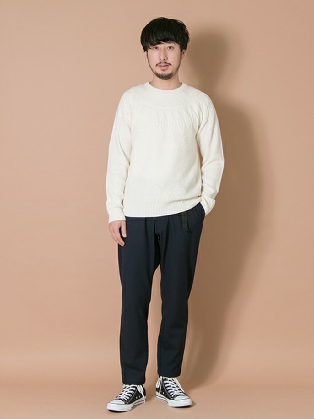 コーディネートの中にギアでスポーティーな印象を落とし込める、スピンドルタイプのイージーパンツ。