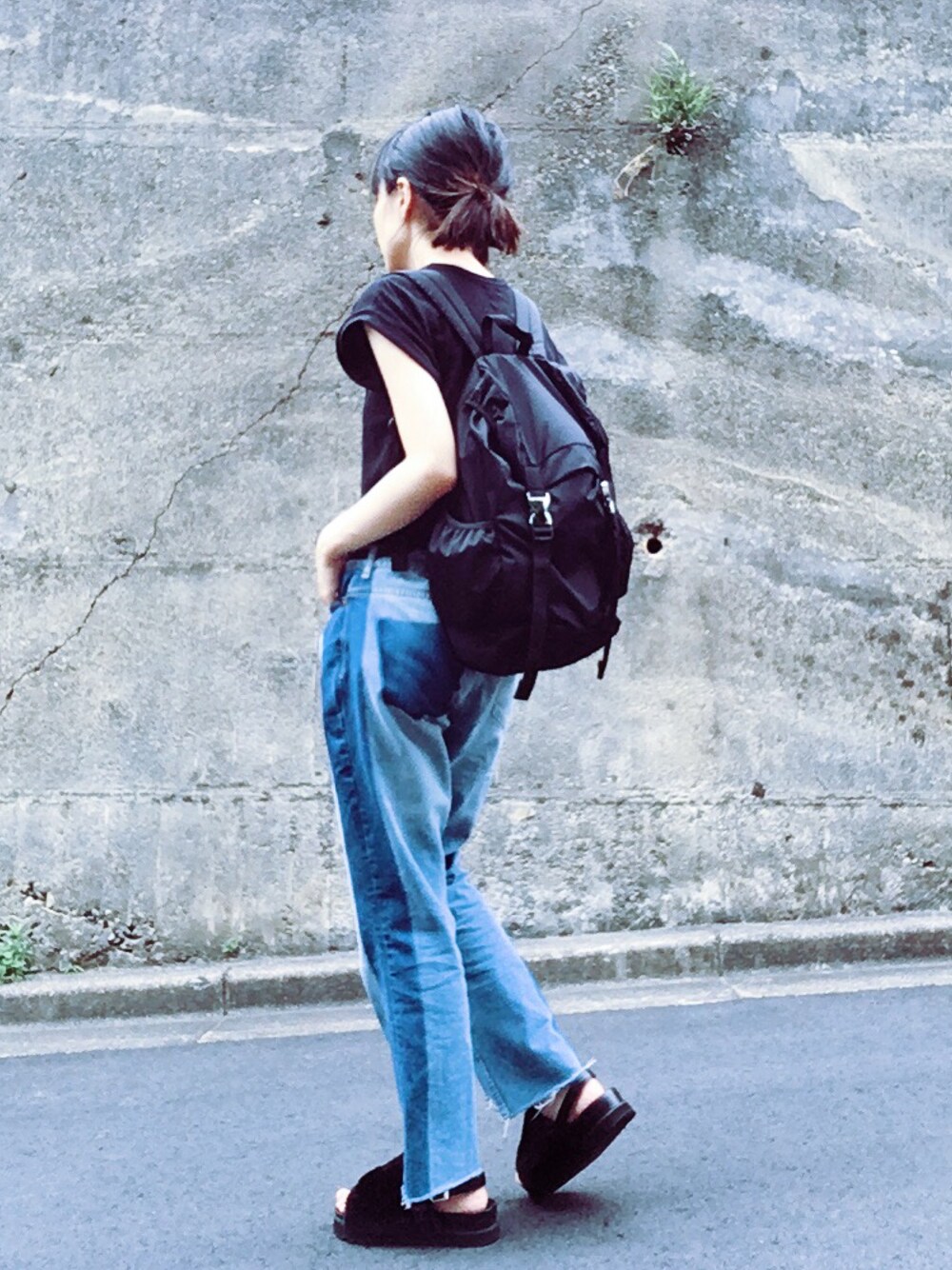 カジュアルにお出かけ🏃✨ デニムパンツ、2色でお気に入り。 ポケットがポイントです💡 そして、 GUの1500円リュックが万能。 パソコンや重いもの入れても疲れない。 しっかりしてるー!