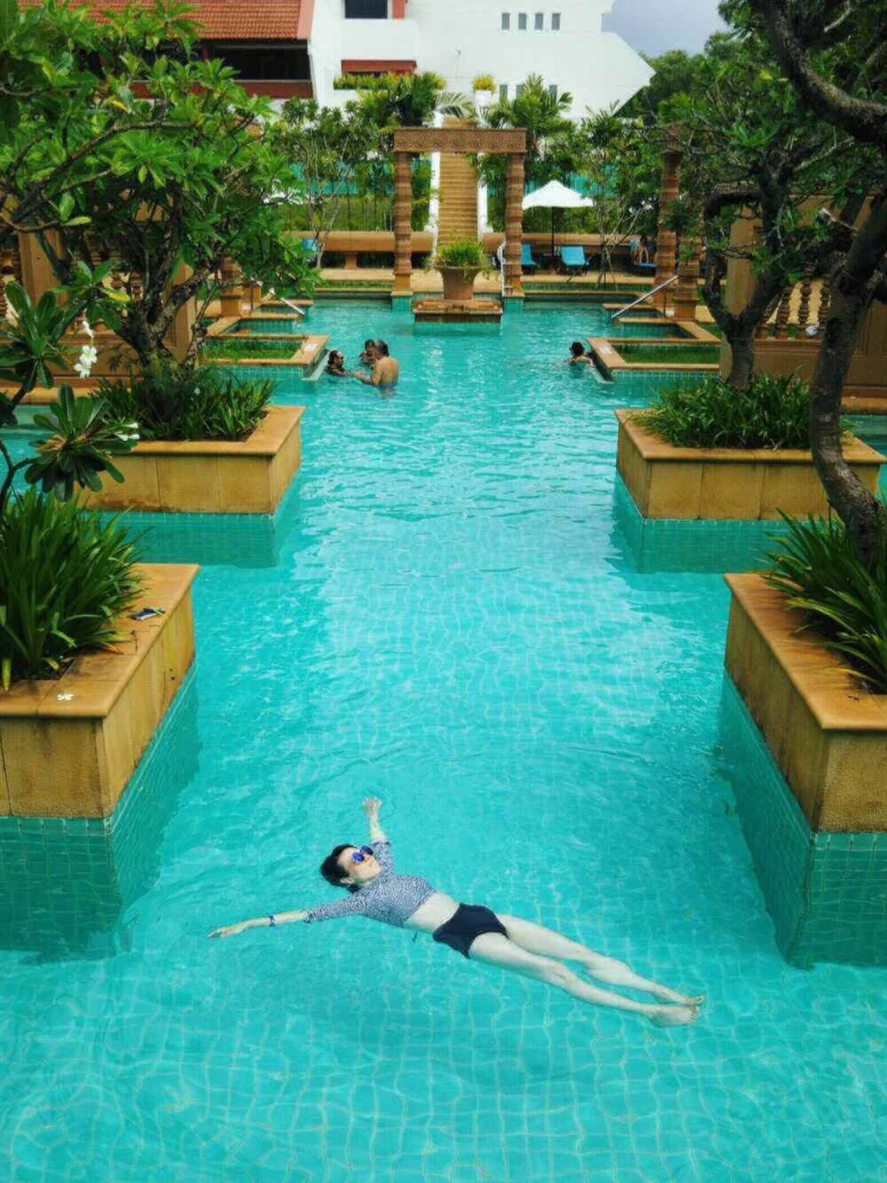 水着はforever21で組み合わせて買いました💡 日焼けと虫除け対策に、 袖のあるやつ便利です☀️ 背中が編上げになっていていてお気に入り。 場所は、 アンコールワット近くの ホテルプール!🌴✨ 静かで広い!穴場です。