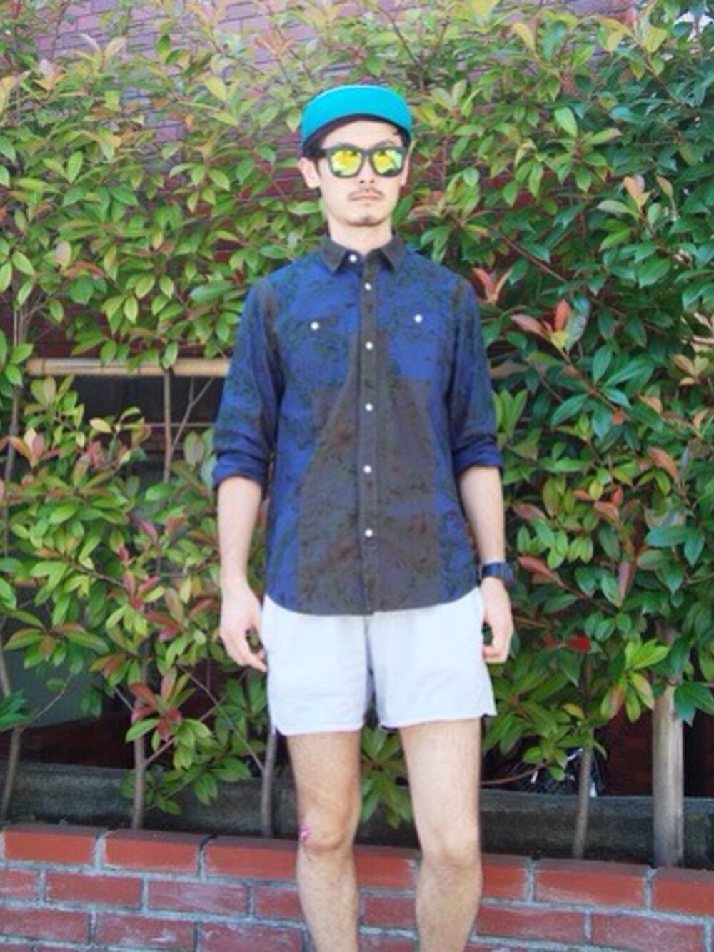 ロングスリーブシャツ+ショーツ。 リネン混のフラワー柄シャツの 袖をまくってコーディネート。 ロングスリーブシャツはオールシーズン着ているマストアイテムです。 ショーツスタイルもトップスを襟もので合わせると スマートに着こなせますね!