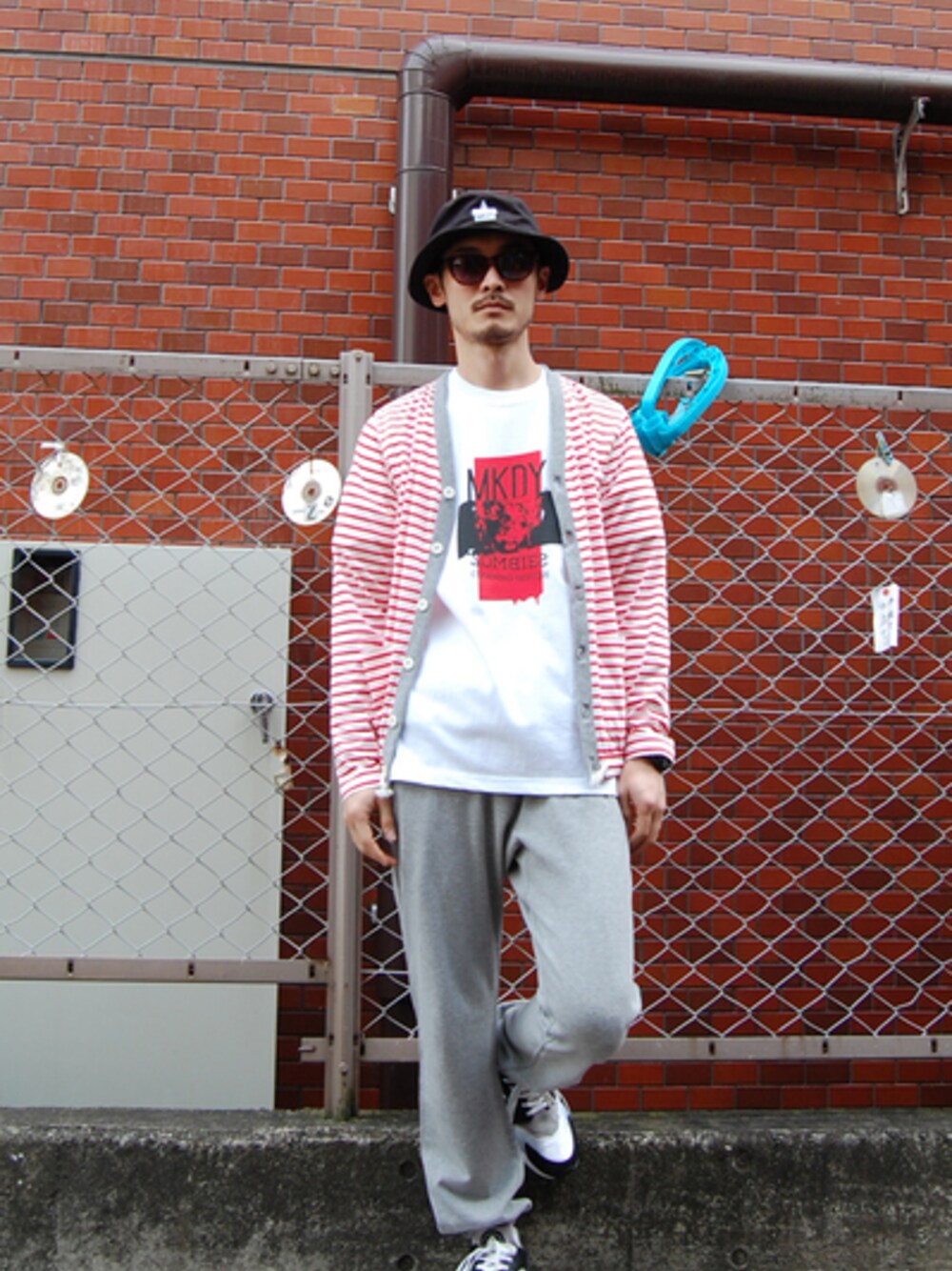 春の週末リラックスコーディネート♬ 肌触りの良い生地感のアイテムをチョイスしています。 ボーダーカーディガンは 肌さわりの滑らかで軽いカットソー地のボーダーカーディガン。 前立て部にはパイル生地を使用したデザインが特徴。 ロンTEEは リヨセル混のスルっとした肌さわりの滑らかで軽い素材感が特徴。 肌触りの非常に良く着心地に特化したアイテム スウェットパンツは 裏起毛なしの柔らかく気持ち良いパイル裏毛生地が穿き心地抜群なスウェットパンツ。 BORDER CARDIGAN カラー:RED サイズ:L L/S BIG TEE カラー:WHITE サイズ:L SWEAT PANTS カラー:TOP GRAY サイズ:32インチ BUCKET HAT カラー:BLACK