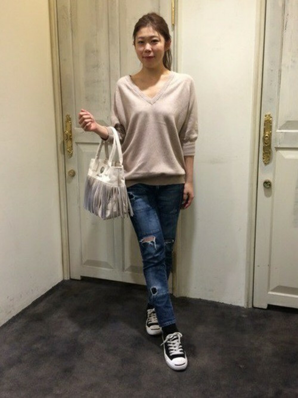 MIYUのニット/セーター「裏毛風Vネックニット」を使ったコーディネート