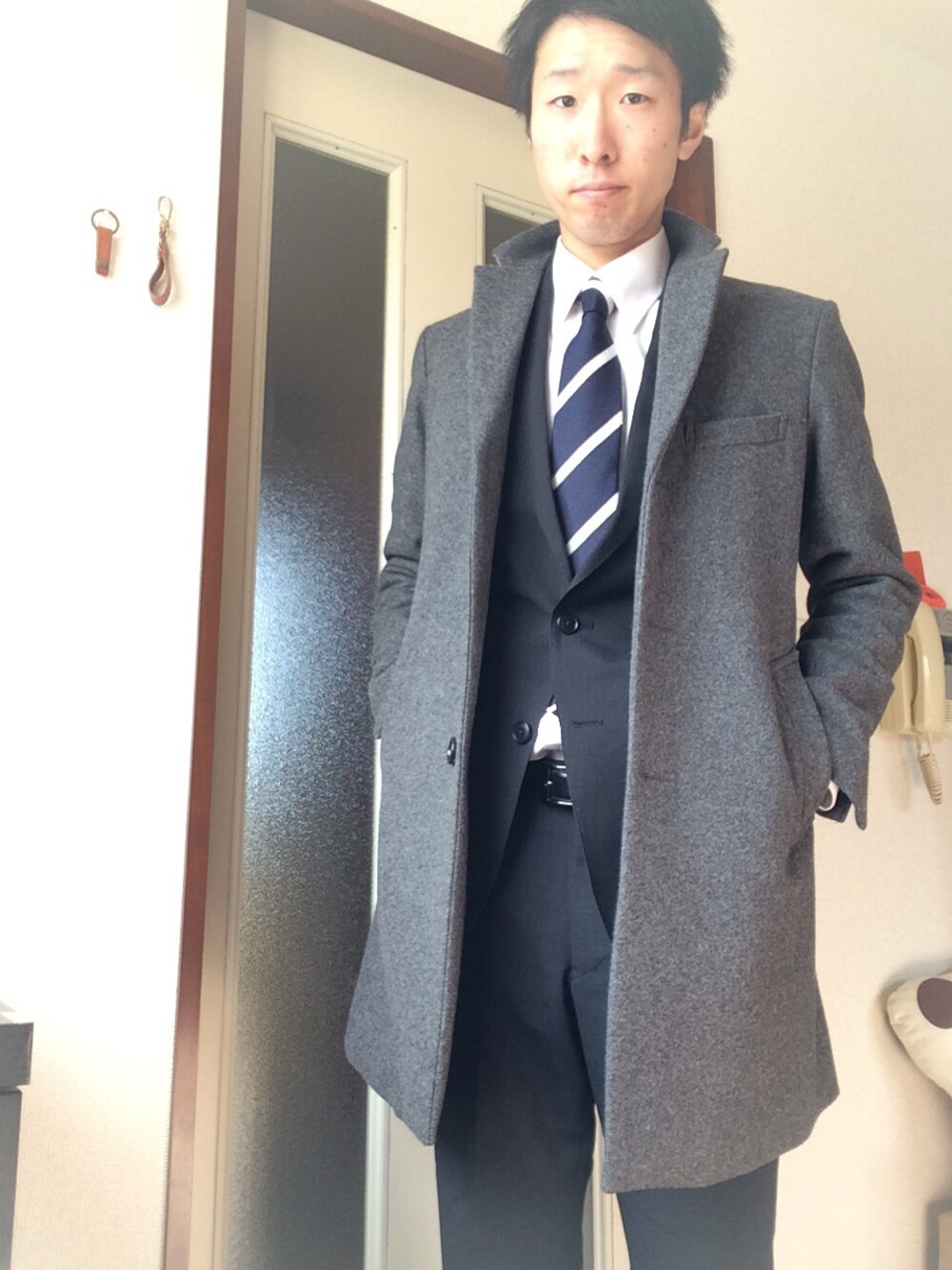 こんにちは。 寒さが戻ってきましたが、 春物スーツしか持ち合わせてないので 非常に寒いです…😦 就活準備のための講座に参加するため 本日はスーツです。 チェスターコートを合わせてみてます。 実はネクタイもBEAMSさんってとこが 今回のこだわりって感じです☺︎